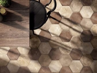 Шестоъгълните елементи са много различни от другите модели. Това се отнася главно за процеса на оформяне, както и за външните качества. Необичайната шестоъгълна форма сега е на мода, често замества класическата правоъгълна или квадратна керамика. По този начин основното предимство е уместността и оригиналността на такова покритие..