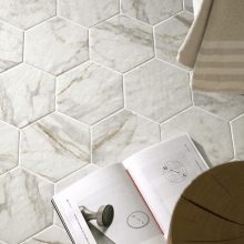Новите колекции на Impranta включват мраморни шестоъгълни модели. Освен това покритието има интересни перлени жилки с лъскав блясък. Подовете с плочки от тази италианска марка изглеждат елегантни и изискани..