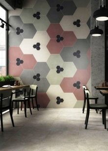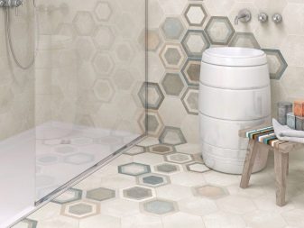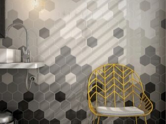 Шестоъгълните елементи са много различни от другите модели. Това се отнася главно за процеса на оформяне, както и за външните качества. Необичайната шестоъгълна форма сега е на мода, често замества класическата правоъгълна или квадратна керамика. По този начин основното предимство е уместността и оригиналността на такова покритие..