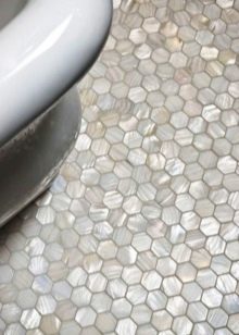 Дизайнът на плочките също може да варира в цвят. Така че, в рамките на една колекция, производителите представят модели, направени в съседни нюанси в същата цветова гама. По този начин можете да подчертаете светли зони на пода и да изложите интересни геометрични шарки: цветя, ромби и други форми. Дори цели картини са изковани с малки шестоъгълни плочки..