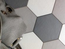 - Релефно. Тази версия на керамика се отличава с наличието на обемна текстура, а самото покритие може да има гланцов или матов горен слой. Отличава се само с интересни шарки, нанесени отгоре. По този начин тази шестоъгълна плочка е най -добрият вариант: трудно се плъзга и изглежда най -печелившата върху нея..