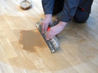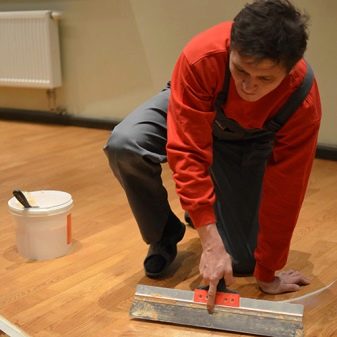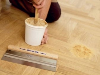 Изисква се и пълнител. Премахва пукнатини и порязвания по пода. Цветът му задължително трябва да съответства на цвета на пода. Трябва да сте бдителни при избора на материал. Дори последователността може да играе важна роля. След известно време на нанасяне, той може да промени драстично цвета си..
