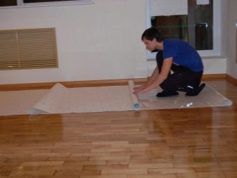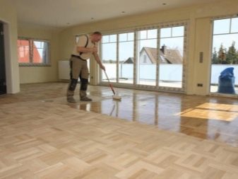 Преди да нанесете лак, подовете се избърсват със специална кърпа. Препоръчва се тъканта да се импрегнира в разтворител.