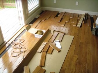 Ако говорим за неправилно подбран или поставен субстрат, ще трябва да премахнете паркета. Що се отнася до тези два фактора, те са възможни поради непрофесионализма на майсторите или с независима безмислена инсталация. Неспазването на правилата, като правило, води до такива последици.
