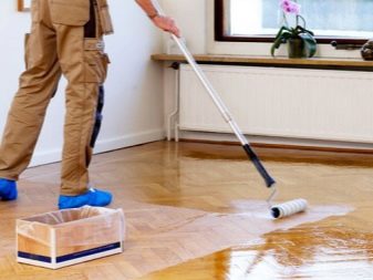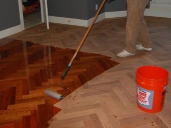 След всички взети мерки трябва да почистите пода с прахосмукачка. Нанася се първият слой боя. За добро покритие лакът се нанася на три слоя. Когато последният слой изсъхне, подовете се измиват с обикновени сапунени продукти, за да се елиминира лепкавостта.. Трябва да се измиете с топла вода.