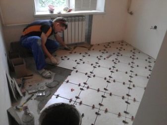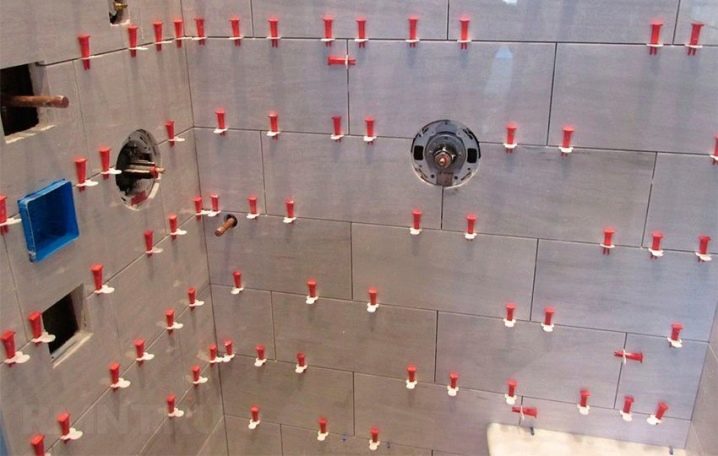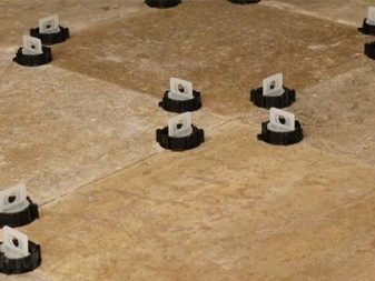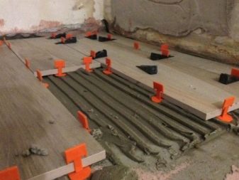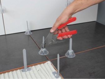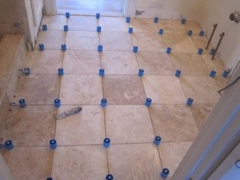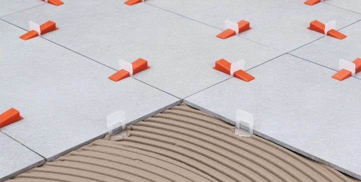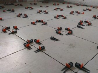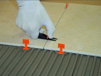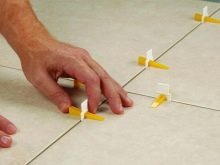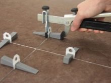 - Благодарение на инсталирането на устройства за изравняване на плочки, лепилото се разпределя равномерно. Това е важно, ако повърхността на подовата настилка има леки неравности..