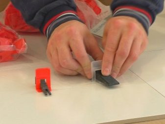 Също така дизайнът може да включва допълнителни компоненти: капачки, скоби, ленти, различни измервателни уреди. За да работи в този случай, е необходим само гумен чук, който да отбие заключващия механизъм..