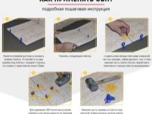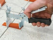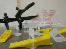 - Вторият вариант на системата включва набор от инструменти: механизми за затягане, различни затягания или ключалки, които изпълняват функцията на закрепване (Litolevel от Litokol, Rubi).