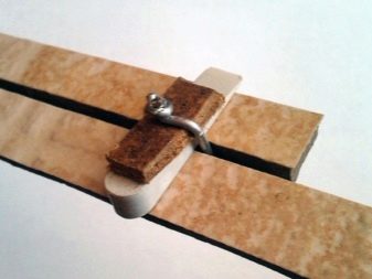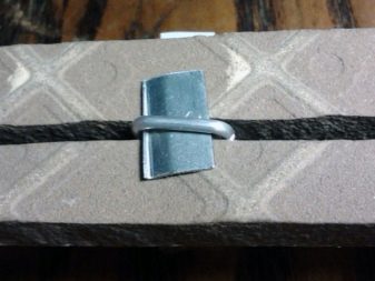 След установяване на получения механизъм между плочките, горните краища на жицата се усукват в спираловидна форма. Първо под телта трябва да се вмъкнат парчета от ПДЧ. По този начин материалите са фиксирани.. След като разтворът на лепилото изсъхне 100%, скобите могат да се свалят. Изпъкналите части на бримката се отрязват с клещи.