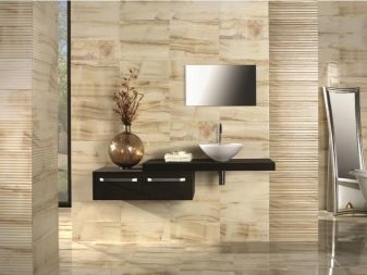 - Плочки. Покриването на стена с плочки изисква много подготвителна работа. Голяма повърхност, завършена с този материал, ще направи стаята неудобна. Ламинираната дъска под плочките ще помогне да се избегнат тези проблеми..