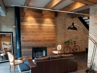 - Стенният панел с дървесен вид съвпада перфектно с тухлата. Следователно, ако стаята е стилизирана като таванско помещение, ламинатът на стената би бил добро решение. Тъй като този стил се характеризира с голямо количество отворено пространство, ламинираната стена ще ви помогне да създадете ярък акцент и да разграничите стаята..