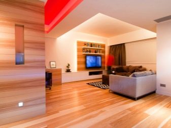 Поради факта, че дъските са лесни за рязане, е възможно да се украсят с тях както цялата повърхност, така и нейната част. Ако в стаята има ниша, тогава е съвсем просто да я подчертаете с ламинат. Лесно инсталиране ви позволява да използвате такова покритие не само по стените, но и по тавана.