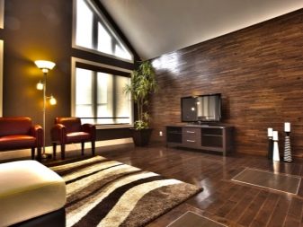 В интериора на хола, като използвате панели, можете визуално да промените размерите на стаята. При монтажа на дъските таванът визуално се издига вертикално, а пространството се разширява хоризонтално.