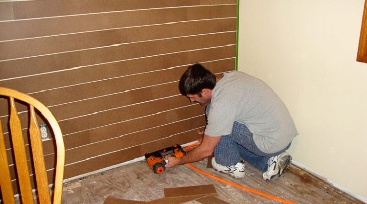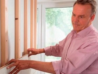 Такива видове без лепило позволяват фугите да останат сухи, което елиминира възможността за оцветяване на покритието. Ламинатът на стената се монтира с помощта на обшивка от дървени или метални пръти. Стъпката на стругата трябва да бъде 30-40 сантиметра. При този тип закрепване повърхността на стената не изисква изравняване, а шумо- и топлоизолацията обикновено се поставя в полученото пространство.