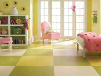 Пастелните розови нюанси са идеални за довършване на пода на класически интериор, стилове в стил Арт Нуво и Прованс. Нюансите могат да бъдат много различни. Комбинацията от няколко пастелни цвята (например светло малина, люляк, бледо розово) изглежда интересно. Можете да направите плавен преход от светъл тон към тъмен цвят: такъв дизайн ще се превърне в акцент в интериора, ще ви позволи да разделите фино пространството на отделни функционални зони.