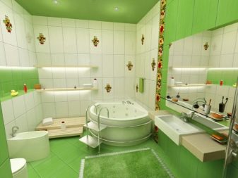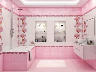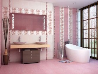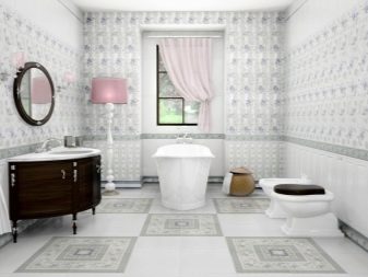 Баните често са декорирани със светли подови плочки.. Това е практично решение, такова покритие не се страхува от влага и също така е лесно за почистване. Дизайнът на тази облицовка в банята може да бъде много разнообразен. Тъй като банята е малко нежилищно пространство, заедно със светли плочки са допустими ярки цветове и контрастни комбинации.