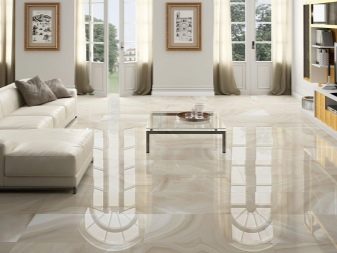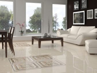 Светлите плочки могат да изглеждат хармонично в почти всяка стая в дома. Ако изберете тази опция като подово покритие, трябва да имате предвид редица нюанси. Такъв под ще бъде студен: струва си да изберете плочки за дневни, ако планирате да направите топъл под или сте свикнали да ходите в чехли. Плочките често са хлъзгави, което може да създаде травматични ситуации..