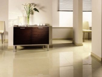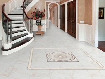 Често такива плочки се използват за украса на пода на коридора. Светлият под в коридора прави пространството визуално по -просторно. Той ще съвпадне с почти всеки цвят мебели и стени. По -често за коридора се избират плочки с матова текстура на повърхността..