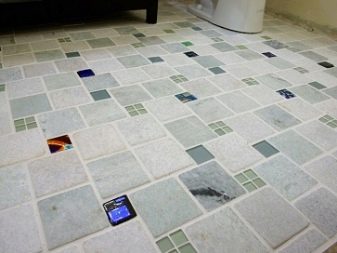 В много интериори ще бъде интересно да разгледате мозайка от плочки.. Сега те произвеждат плочки с различни форми и размери, за да създадат уникални шарки. Можете да поставите боядисани квадратчета и правоъгълници с различни цветове в мозайка в кръг, да направите орнамент по периметъра на стаята или да украсите целия под по този начин. Най -често те използват флорални орнаменти, характерни за традиционния интериор, но интересен ще изглежда и абстрактен модел..