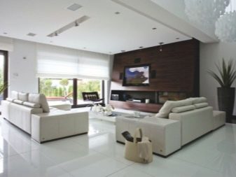 В модерен интериор (например високотехнологичен стил) светлите облицовки изглеждат стилни. В този случай обаче трябва да изберете топла цветова схема и матова текстура. Съвременният интериор е лаконичен, така че в хола е важно да се вземе предвид лекотата на възприемане на материала. Сложните шарки и комбинации от завършвания с пъстра гама са неприемливи.