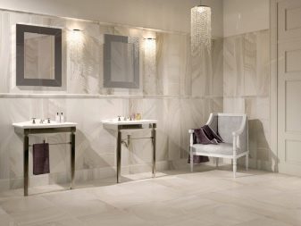 Тъй като използването на бели плочки за подови настилки е непрактично, плочките от млечен цвят и слонова кост често се избират за облицовка. В същото време е важно да се има предвид: довършването с такива плочки трябва да се извършва възможно най -ефективно. Всички недостатъци в монтажа и неравностите на пода с млечни или бело-сиви плочки ще бъдат забележими.
