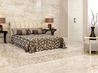 Много по -рядко подът в спалнята или в детската стая е положен с плочки. Ако правите отопление, можете да поставите плочките на пода на всяка стая в къщата. За всяка стая можете да изберете различен керамичен дизайн, въпреки че всички опции могат да бъдат комбинирани чрез основен цвят или модел. Могат да се използват гланцови, матови повърхности.