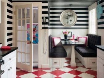 - Визуално увеличава пространството. В зависимост от избрания цвят и композиция, той се разширява или удължава.