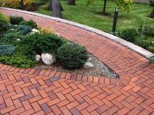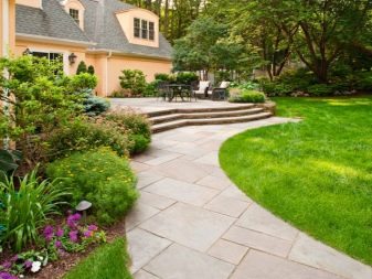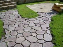 Разположението на тротоарните плочи зависи от пейзажа, архитектурата на сградите в лятната вила, формата на пътеките и тяхната площ, както и от вида и цвета на облицовката на пътя.