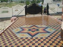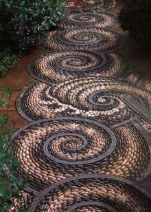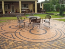 - Кръгово подреждане донякъде подобен на спиралата. Обикновено за него се използват клиновиден тротоарни плочи. Разликата е, че рисунката започва да се разпространява не от центъра, а от ръба, като стеснява кръга.