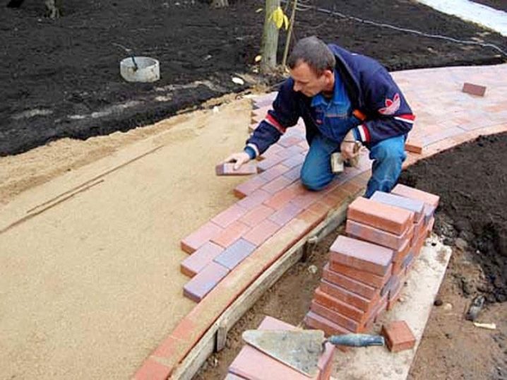 - На пясъчна възглавница. Това е класическият метод, при който плочките се полагат директно върху пясъка. Пясъчният слой не трябва да надвишава 10 см. В идеалния случай той е 5-6 см. Преди работа пясъкът се навлажнява, изравнява и трамбова. Цялата конструкция се поддържа от бордюри, които са допълнително подсилени с бетон отвън.
