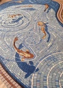 - Художествена схема. Той е един от най -трудните за изпълнение и включва полагане на плочки с различни цветове и форми в сложни орнаменти и цели картини..