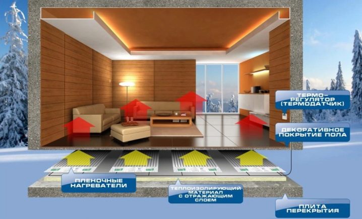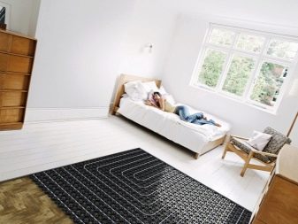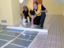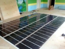 Ако инсталирате инфрачервен филм, няма да усетите намаляване на височината на помещението и в същото време такъв нагревател извлича по -малък ток от най -ефективните кабели. Но от друга страна, инфрачервеният филм е доста скъп., не може да се използва навсякъде с висока влажност. И определено ще имате нужда от равномерна основа, в противен случай съществува риск от счупване на устройството.