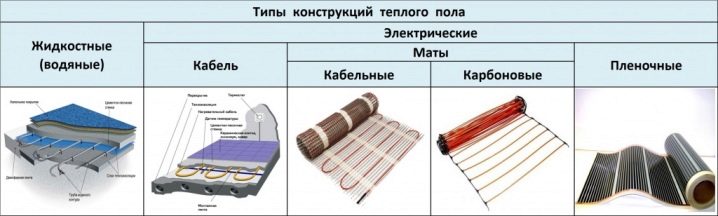 Подовото отопление е разделено на три основни групи: с циркулираща вода, с нагревателен кабел и с инфрачервено отопление. Независимо от конкретния тип, всички тези решения са различни:
