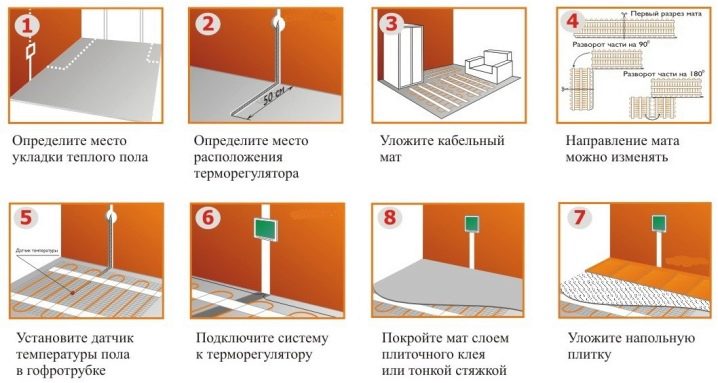 Препоръчва се многократно (в най -трудните случаи 5 пъти) затопляне на замазката, това ще образува мрежа от фини термични пукнатини. Такова “обучение” ще ви позволи да избегнете в бъдеще появата на деформации, които могат да повредят ламината. Когато всички инсталационни работи приключат, ще трябва да пробиете цоколите и да извадите кабела от тях. Според експерти най-добре е да поставите полистирол, покрит с фолио, под електрически нагреватели, за да го изолирате от подови настилки.