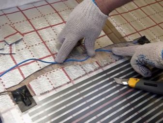 Не забравяйте да проверите не само дали подът е равен, но и че е чист и сух. 100% от повърхността е покрита с топлоотразяващ материал с плътен слой. Неприемливо е използването на алуминиево фолио под каквато и да е форма. С помощта на лепяща лента се закрепват части от основата. След като е готов, можете да изберете място за свързване на термостата. Вграденият регулатор и проводниците, през които токът тече към него, трябва да бъдат положени в стробоскопа.