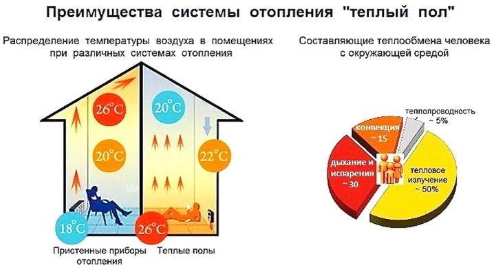 Предимството на водно отопляем под е неговата безопасност и стабилност при използване, ефективна работа в режим на естествена циркулация дори при липса на ток в мрежата. В този случай е необходимо да се вземе предвид сложността на инсталацията, като се намали височината на помещението. Ако тръбата изтече, ще бъде трудно да се отстрани дефектът. Дизайнерите обаче вземат предвид това обстоятелство и сега тръбите са направени от такива надеждни материали като полиетилен и метал-пластмаса. Допълнителната защита на цименто-пясъчната им замазка също намалява риска от повреда до минимум..