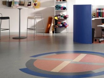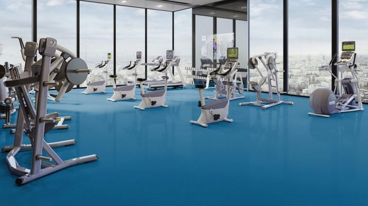 - За фитнес клуб Препоръчва се да изберете монохроматично амортизиращо покритие, което няма да отклони вниманието от тренировките, но в душовете можете да поставите водоотблъскващ линолеум с водна шарка или 3D линолеум с образа на делфини, които се шушукат във водата.