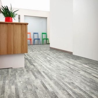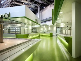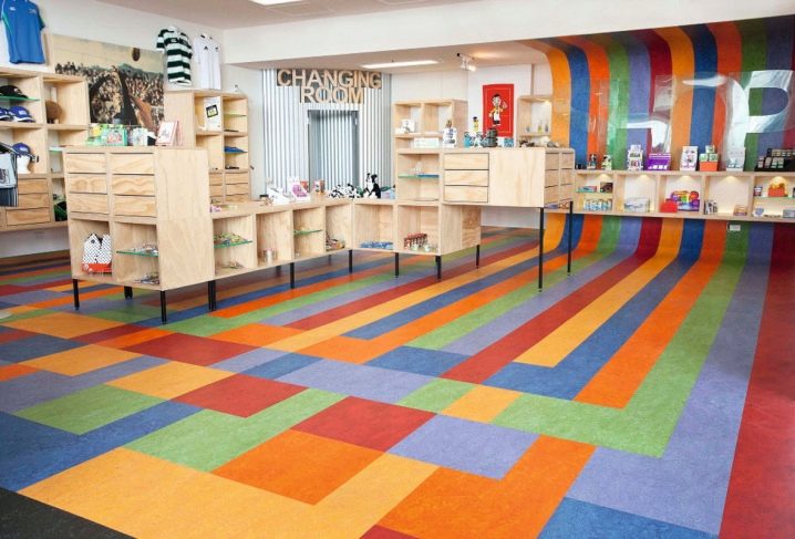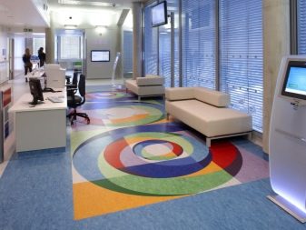 Търговските линолеуми обикновено се предлагат в класически, сдържани и строги модели, въпреки че цветовете могат да бъдат заглушени или ярки цветове. Така че няма да е трудно да изберете подовия дизайн за вашата компания. Но ако имате нужда от необикновен дизайн, ще трябва да работите усилено и да търсите подходящите материали или да спестите време, като направите индивидуална поръчка от производителя..