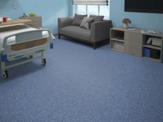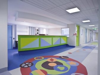 - В болницата Препоръчва се използването на покритие с шумопотискане само в приглушени, успокояващи нюанси. Макар и по -ярки, по -весели цветове са подходящи за детските отделения. Например, звукоизолиращият линолеум с нежен зелен нюанс с лайка ще има успокояващ ефект върху психиката на децата и медицинския персонал и в същото време е достатъчно ярък, така че децата да не се отегчават..
