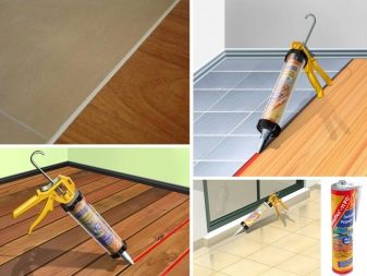 Обработката на ламинатни фуги с уплътнител се извършва при инсталиране на ново покритие или за укрепване на старото. Свързването между плочки и ламинат без праг може да бъде запечатано със силиконов уплътнител.