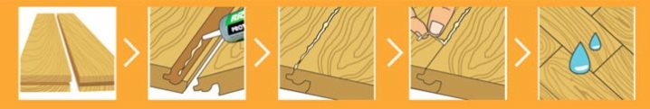 По правило бюджетните опции за ламинат нямат добри характеристики, отблъскващи влагата. При продължителна употреба на подовата настилка могат да се образуват кухини и пукнатини по фугите, което води до появата на скърцане. За да се подобрят характеристиките на ламината и да се избегнат много от проблемите, свързани с подовите настилки, се препоръчва да се използва специален уплътнител по време на монтажа..