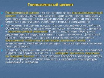 Специално място в линията на тези продукти се отделя на бързодействащ тип строителна смес, чиято основна характеристика е способността на материала да замръзва не само при контакт с въздух, но и във вода. Този продукт се нарича алуминиев цимент. Освен това има и други наименования на продукти, например алуминатен цимент..