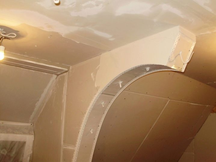 Лекотата на сводестите части от гипсокартон не изисква изграждането на подсилени рамкови конструкции. Материалът не се нуждае от специални устройства за закрепване към рамката, достатъчни са обикновени самонарезни винтове.