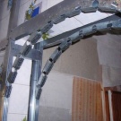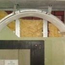 - Рамката на арката първоначално е монтирана от метален профил, за това, в зависимост от радиуса, след 7-10 см, страничните ръбове са нарязани на профила, профилът е огънат и подсилен в отвора. За якост на конструкцията на няколко места се монтират вертикални укрепващи елементи.