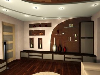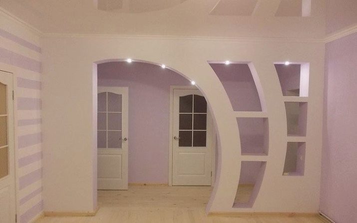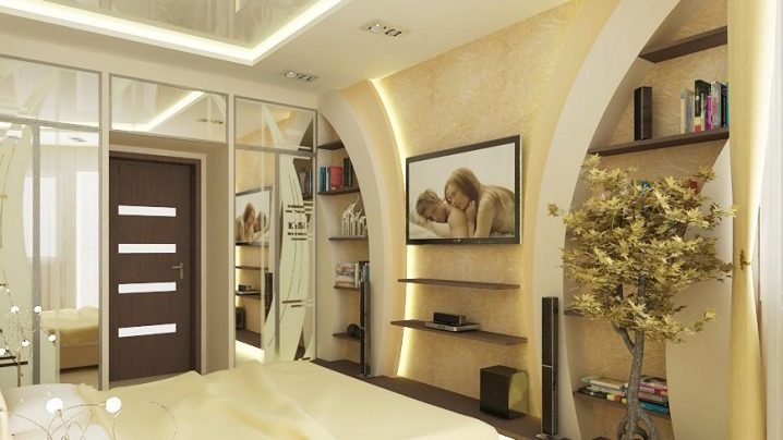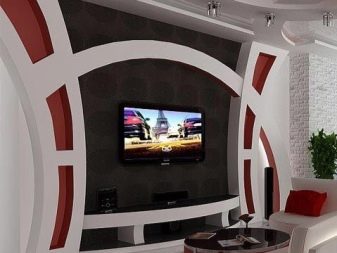 Арковата гипсокартон е незаменим при проектирането на ниши за телевизор в хола. Стената придобива обем и дълбочина. За начинаещите ще бъде трудно самостоятелно да завършат сложни структурни елементи. Като начало можете да изберете една или две сводести ниши и да украсите стената в хола с тях..