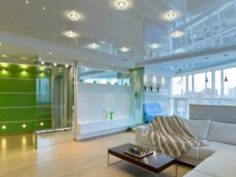 Гланцовата текстура визуално увеличава обема, по -специално височината на помещението, поради огледалния ефект. Светлината от осветителни тела, пречупваща се върху “огледалната” повърхност, се разпространява в цялата стая, запълвайки дори сенчести зони.