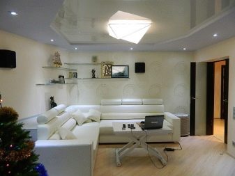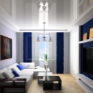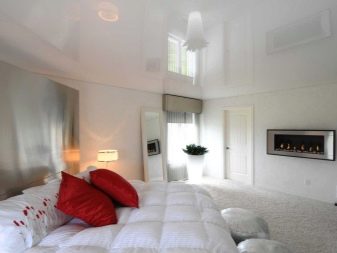 В стая с нисък „потискащ“ таван, бяло опънато платно с лъскава текстура визуално ще увеличи обема на помещението, като по този начин ще направи престоя в стаята по -приятен и комфортен.