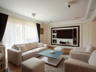 - Белият цвят на тавана визуално увеличава пространството на стаята, което в комбинация с големи отвори за прозорци ще подобри отвореността на пространството.