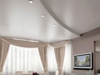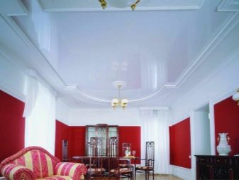 - Белият таван с лъскава текстура от PVC филм е идеален за създаване на комфортна, спокойна атмосфера чрез инсталиране на осветително оборудване под повърхността на тавана.