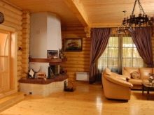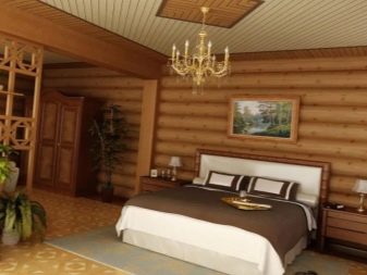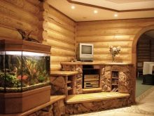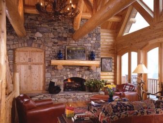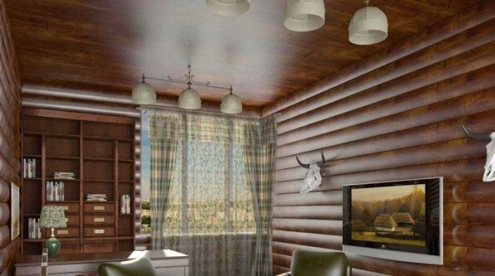 Можете да използвате блокова къща в интериора по различни начини, комбинирайки панели с различни цветове помежду си, за да получите оригинална рисунка. Също така, интересен вариант може да бъде комбинация от няколко дървен материал: блок къща, обикновени дъски, дървен материал. Дървото се съчетава добре с други естествени материали: камък, кожа, текстилен декор.